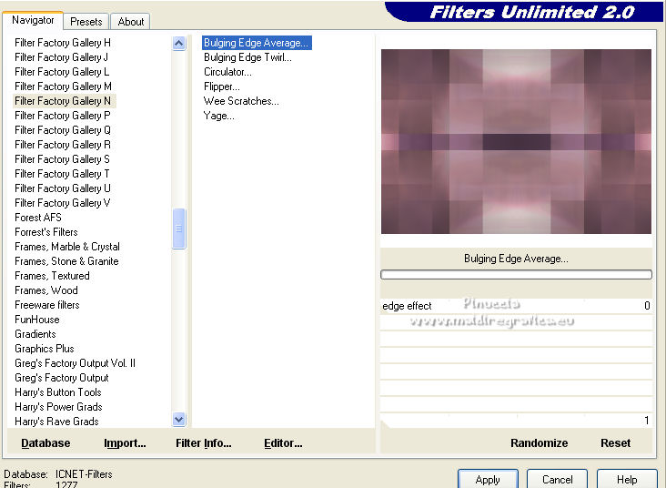 4. Effets>Modules Externes>Filters Unlimited 2.0 - Filter Factory Gallery N - Bulging Edge Average.