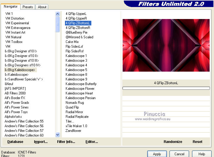 5. Effets>Modules Externes>Filters Unlimited 2.0 - &<Bkg Kaleidoscope> - 4QFlip ZBottomL.