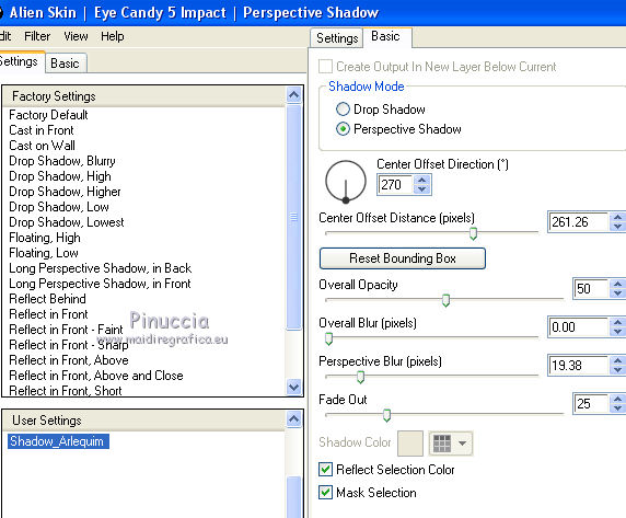 20. Effets>Modules Externes>Alien Skin Eye Candy 5 Impact - Perspective Shadow.