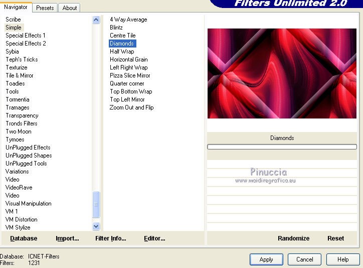 3. Effets>Modules Externes>Filters Unlimited 2.0 - Simple - Diamonds.