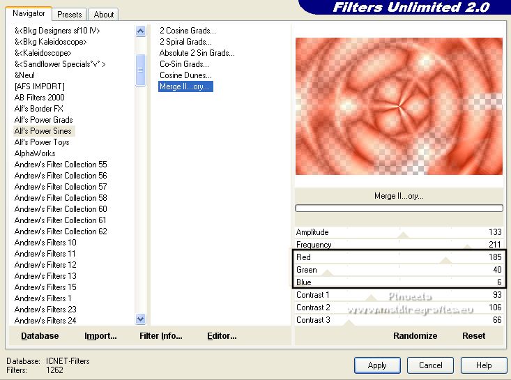 Filtres Graphics Plus, Alf's Power Sines, Toadies et Simple peuvent être utilisés seuls ou importés dans Filters Unlimited.