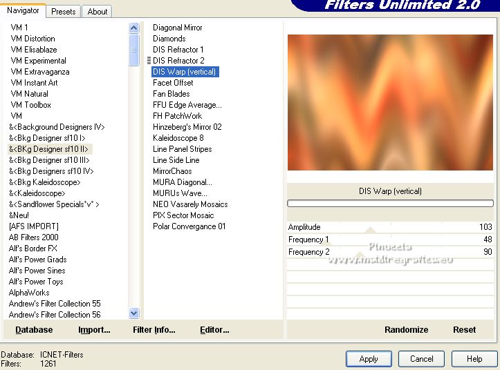 6. Effets>Modules Externes>Filters Unlimited 2.0 - &<Bkg Designer sf10II> - DIS Warp (vertical)
