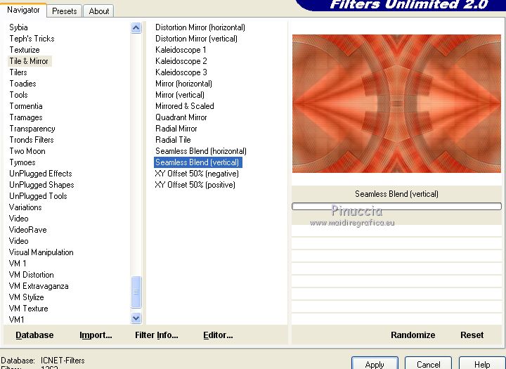 24. Effets>Modules Externes>Filters Unlimited 2.0 - Tile & Mirror - Seamless Blend (vertical)