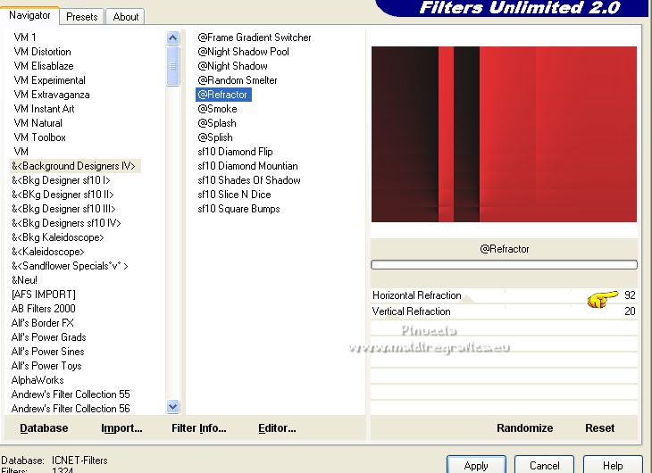 Répéter Effets>Modules Externes>Filters Unlimited 2.0 - &<Background DesignersIV> - @Refractor, par défaut.
