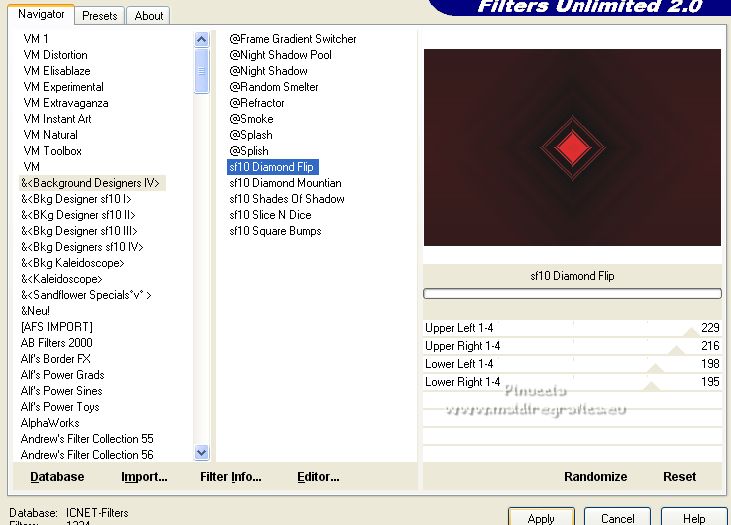 6. Effets>Modules Externes>Filters Unlimited 2.0 - &<Background DesignersIV> - sf10 Diamond Flip