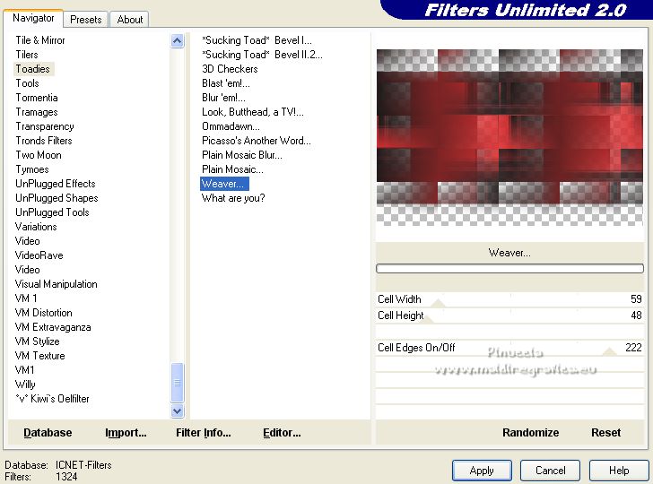 9. Effets>Modules Externes>Filters Unlimited 2.0 - Toadies - Weaver, par défaut.