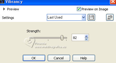 15. Adjust>Hue and Saturation>Vibrancy, same settings.