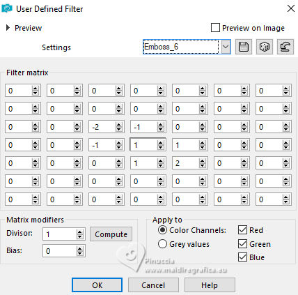 12. Effects>User Defined Filter - select the preset Emboss 6 and ok.