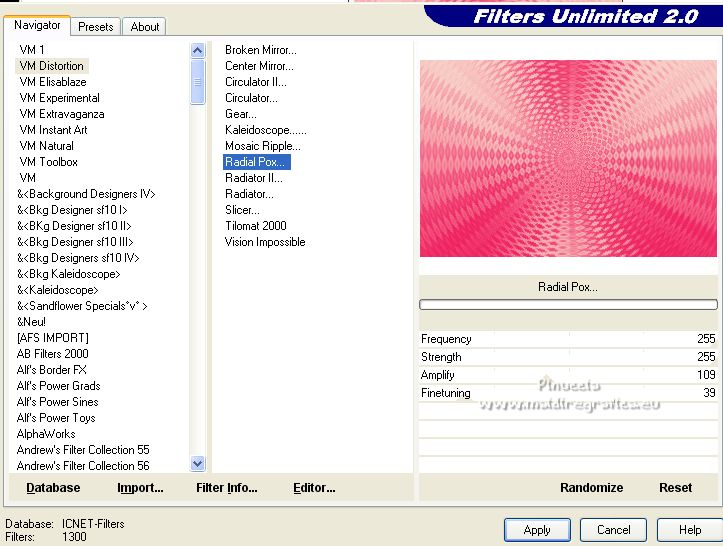 4. Effets>Modules Externes>Filters Unlimited 2.0 - VM Distortion - Radial Pox.