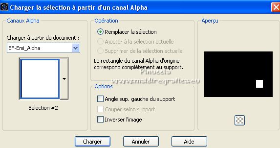 16. Sélections>Charger/Enregistrer une sélection>Charger à partir d'un canal alpha.