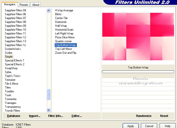 8. Effets>Modules Externes>Filters Unlimited 2.0 - Simple - Top Bottom Wrap.