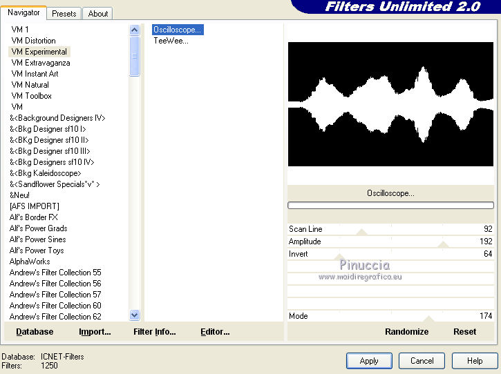 6. Effets>Modules Externes>Filters Unlimited 2.0 - VM Experimental - Oscilloscope