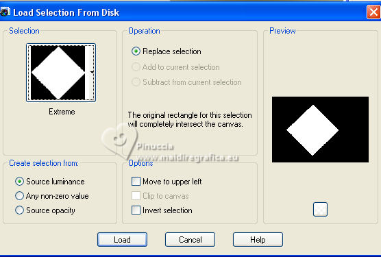 7. Selections>Load/Save Selection>Load Selection from Disk.