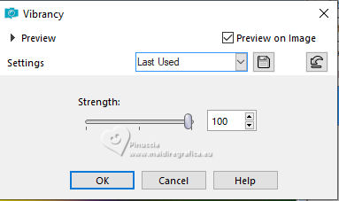 18. Adjust>Hue and Saturation>Vibrancy, same settings.
