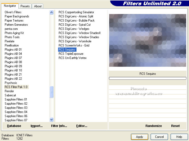 6. Effets>Modules Externes>Filters Unlimited 2.0 - RCS Filter Pack - RCS Sequins.