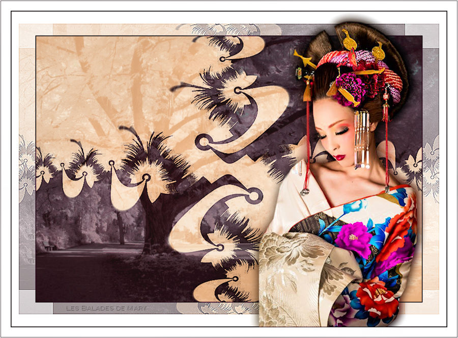 11. Image>Ajouter des bordures, 2 pixels, symétrique, couleur d'avant plan #57414c.