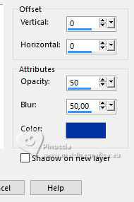 Effects>3D Effects>Drop Shadow, foreground color #0032a2.
