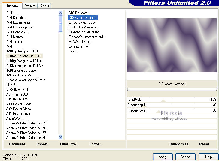 3. Effets>Modules Externes>Filters Unlimited 2.0 - &<Bkg Designer sf10II> - DIS Warp (vertical).