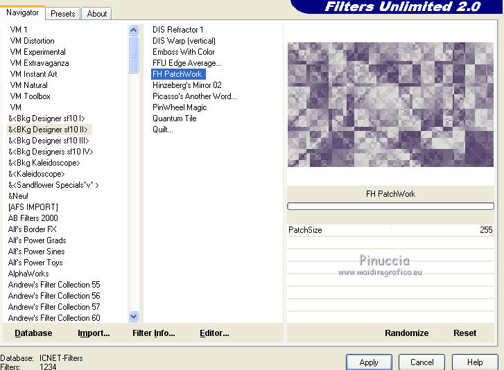 Effets>Modules Externes>Filters Unlimited 2.0 - &<Bkg Designer sf10II> - FH Patchwork.
