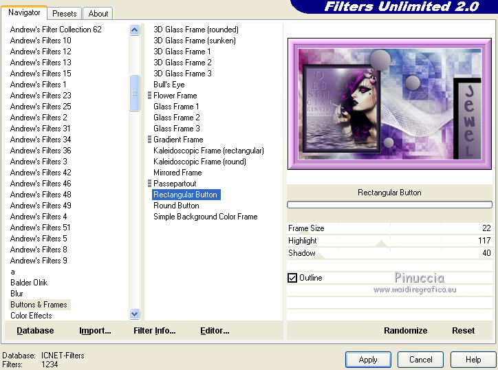33. Effets>Modules Externes>Filters Unlimited 2.0 - Buttons & Frames - Rectangular Button.