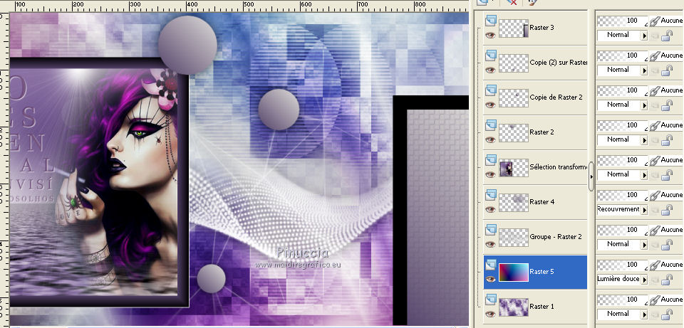 Placer le calque en mode Lumière douce (ou en fonction de vous couleurs)