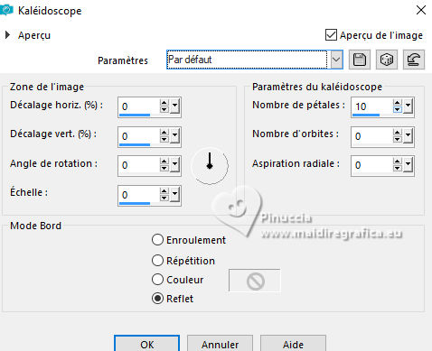 15. Effets>Effets de réflexion>Kaléïdoscope, par défaut.