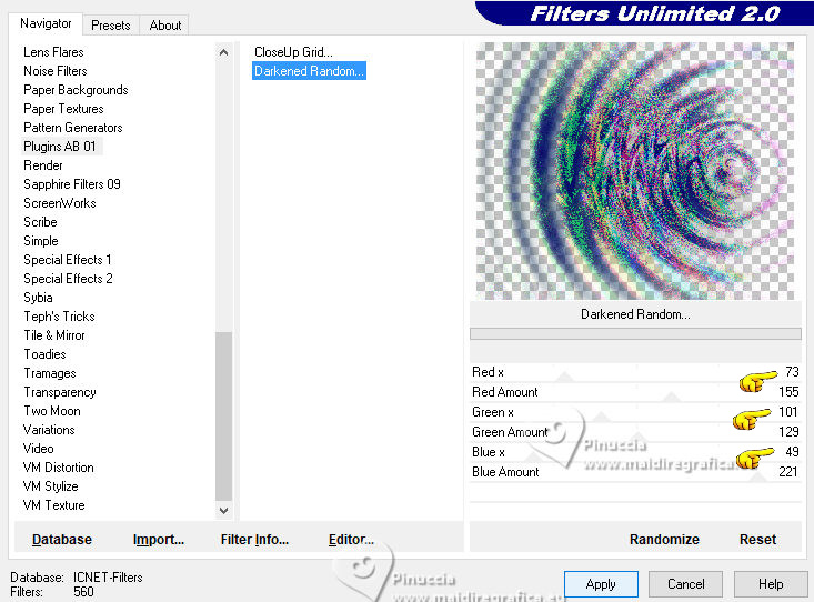 Effects>Plugins>Filters Unlimited 2.0 - AB 1 - Darkened Random.