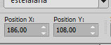 Set Position X: 186,00 and Position Y: 108,00.