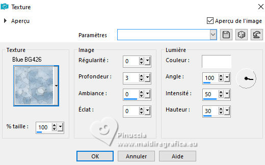 12. Effets>Effets de textures>Texture - sélectionner la texture Blue BG426