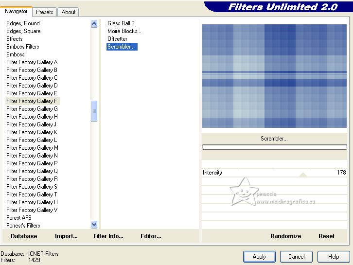 2. Effets>Modules Externes>Filters Unlimited 2.0 - Filter Factory Gallery - Scambler