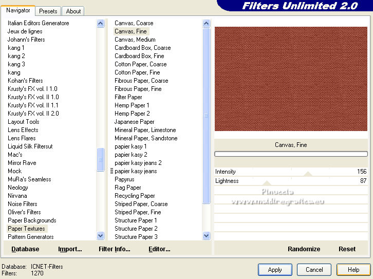 16. Effets>Modules Externes>Filters Unlimited 2.0 - Paper Texture - Canvas Size, par défaut.