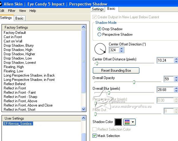 21. Effets>Modules Externes>Alien Skin Eye Candy 5 Impact - Perspective Shadow.