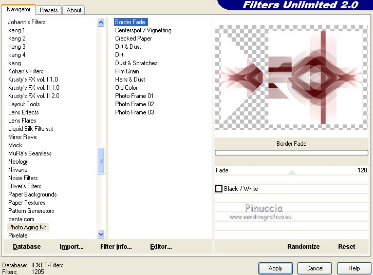 13. Effets>Modules Externes>Filters Unlimited 2.0 - Photo Aging Kit - Border Fade.
