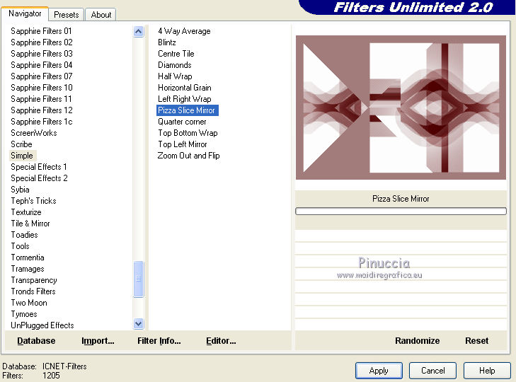11. Effets>Modules Externes>Filters Unlimited 2.0 -Simple - Pizza Slice Mirror.
