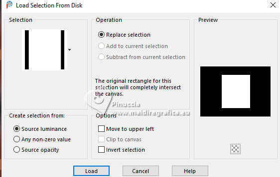 17. Selections>Load/Save Selection>Load Selection from Disk.