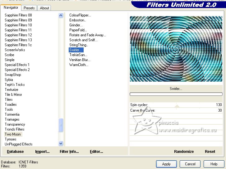 5. Effets>Modules Externes>Filters Unlimited 2.0 - Two Moon - Swirler...
