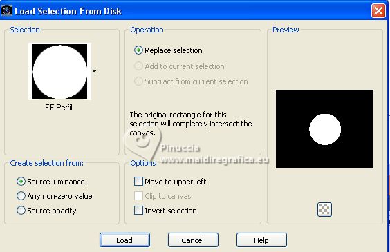 26. Selections>Load/Save Selection>Load Selection from Disk.