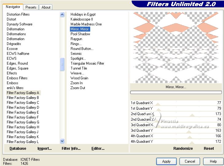 8. Effects>Plugins>Filters Unlimited 2.0 - Filter Factory Gallery A - Mirror,Mirror, par défaut