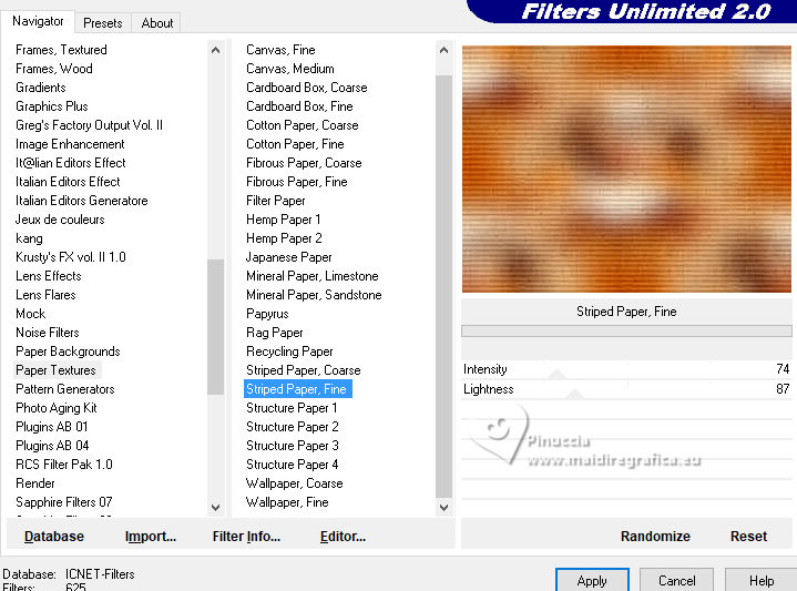 4. Effets>Modules Externes>Filters Unlimited 2.0 - Paper Textures - Striped Paper, Fine, par défaut.