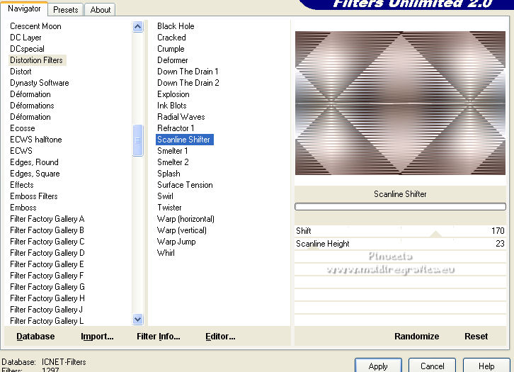 19. Effets>Modules Externes>Filters Unlimited 2.0 - Distortion Filters - Scanline Shifter.