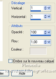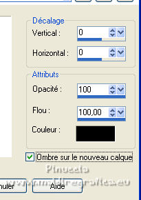 Effets>Effets 3D>Ombre portée, couleur noire, ombre sur le nouveau calque coché.