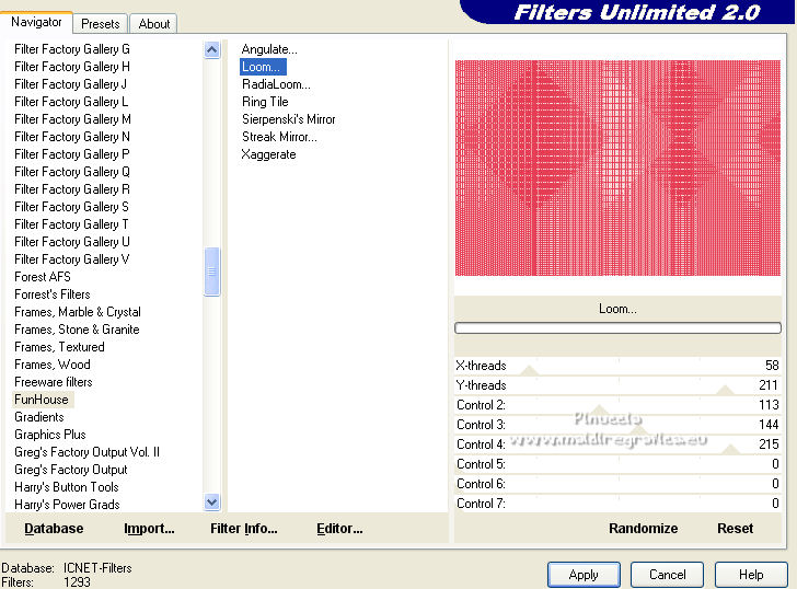 6. Effets>Modules Externes>Filters Unlimited 2.0 - Funhouse - Loom.