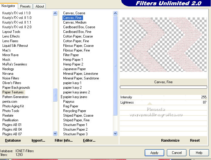 11. Effets>Modules Externes>Filters Unlimited 2.0 - Paper Texture - Canvas Fine.