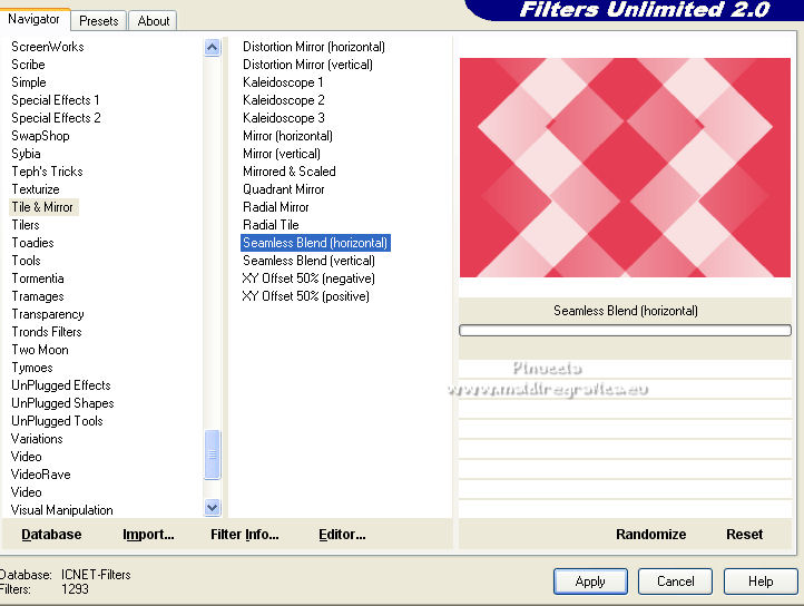 5. Effets>Modules Externes>Filters Unlimited 2.0 - Tile & Mirror - Seamless Blend (horizontal).