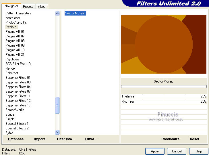 Effets>Modules Externes>Filters Unlimited 2.0 - Pixelate - Sector Mosaic