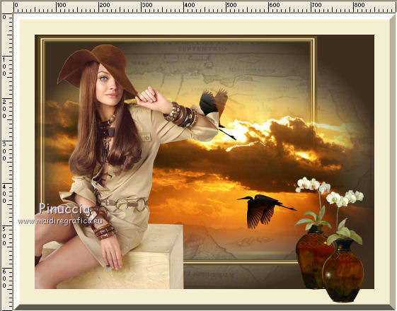 5. Image>Ajouter des bordures, 50 pixels, symétrique, couleur #f6eed1.