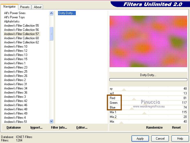 Effets>Modules Externes>Filters Unlimited 2.0 - Andrew's Filter Collection 57 - Dotty dotty