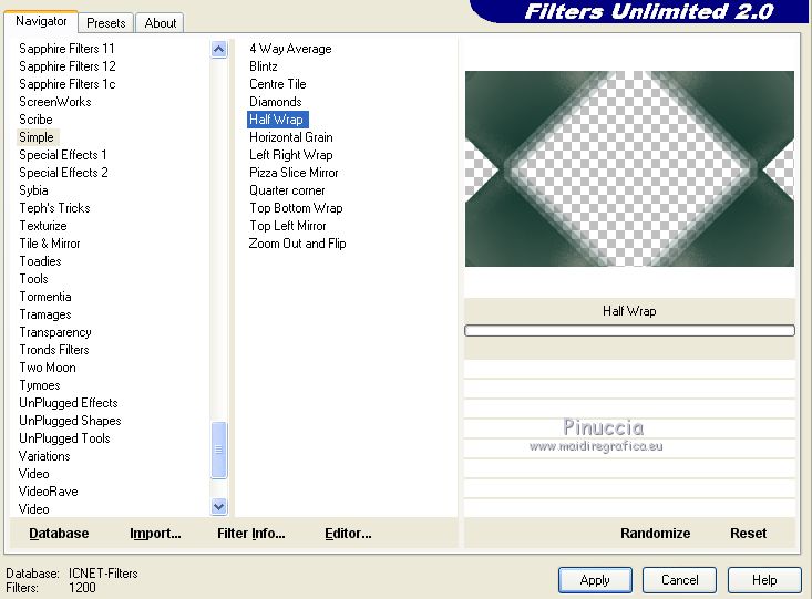 Effets>Modules Externes>Filters Unlimited 2.0 - Simple - Half Wrap.