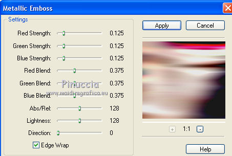 5. Effets>Modules Externes>FM Tile Tools - Metallic Emboss, par défaut.