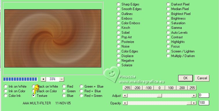 9. Effets>Modules Externes>AAA Filters - AAA Multifilters - sélectionner Texture et ok.